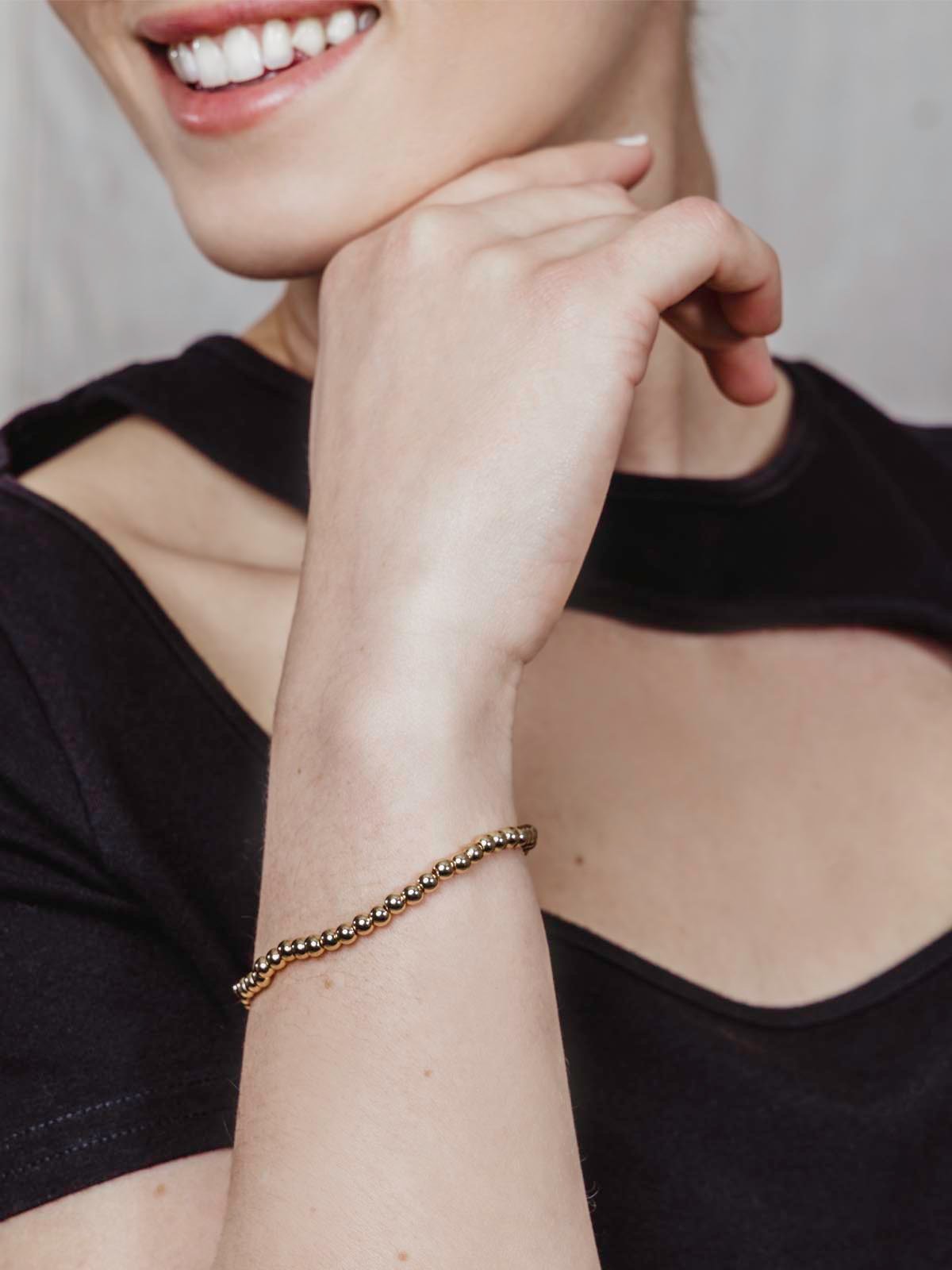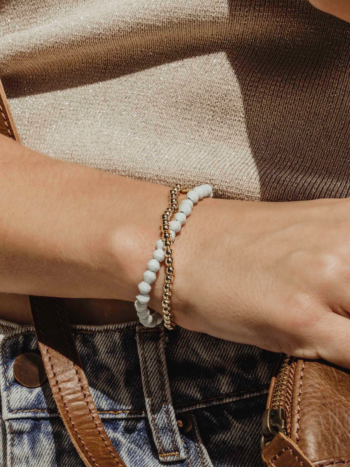 Talk about arm candy! Wear this chic artisan bracelet on its own to add a little glitz or layer it with other bracelets for a bolder look. Elegant 18K gold-plated beads add instant polish while the stretch design keeps you comfy all day long!