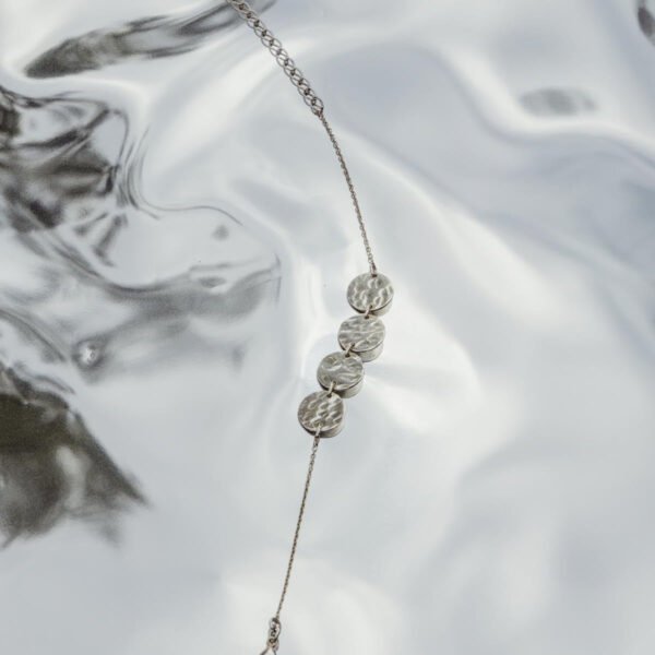 Four small hammered discs on a delicate chain make this bracelet a standout piece that effortlessly complements both casual and formal attire. Add some flash to your ensemble with this handcrafted accent piece. The artisans at Dekko Trading Co mix modern design with the age-old craft of metal working to create this gorgeous strand of hammered discs.
