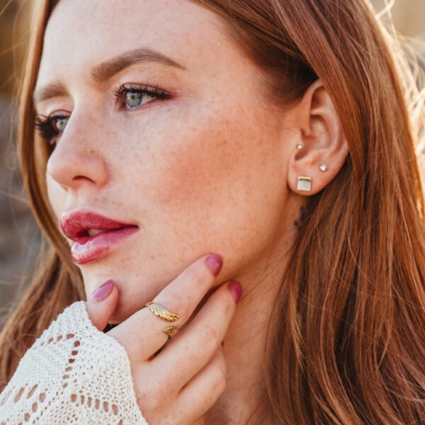 Elevate your everyday style with the timeless elegance of the Kelly Mother of Pearl Stud Earrings from Starfish Project. These captivating square stud earrings feature shimmering mother-of-pearl set in a delicate 18k gold plated setting. adding sophistication to any outfit. We love them as an everyday stud. or even as a bridal or mother of the bride earring.